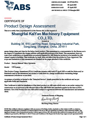 ABS船級(jí)社PDA證書(shū)